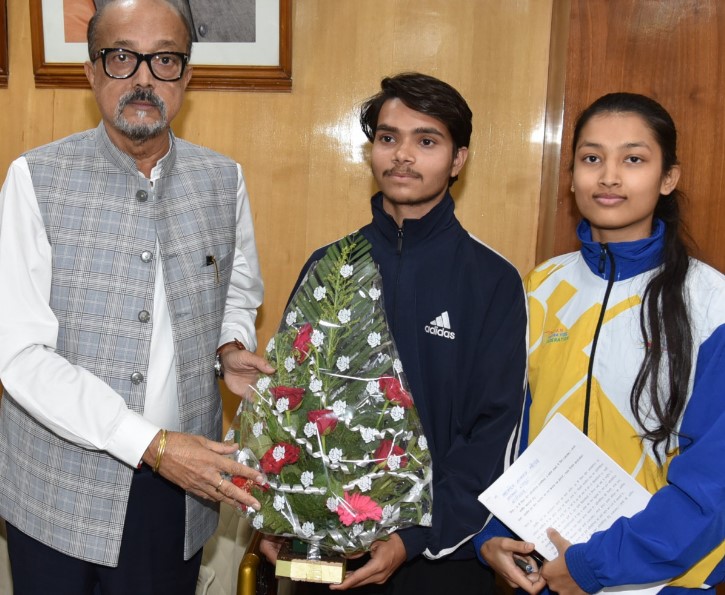 ये प्रतिभागी आगामी अप्रैल माह में मलेशिया में आयोजित होने वाली 16वीं विश्व योग प्रतियोगिता में भारतीय दल का प्रतिनिधित्व करेंगे। छत्तीसगढ़ के प्रतिभागी खिलाड़ी सुश्री साक्षी वर्मा और श्री विभांशु बंजारे और उनके योग प्रशिक्षक श्री नमेश कुमार साहू ने आज राजभवन में राज्यपाल श्री डेका से मुलाकात की। श्री डेका ने प्रत्येक प्रतिभागी के लिए 25-25 हजार रूपये की अनुदान राशि स्वीकृत की और उन्हें बेहतर प्रदर्शन करने के लिए शुभकामनाएं दी।