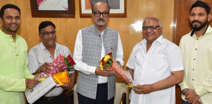 राज्यपाल श्री रमेन डेका से आज राजभवन में भारतवर्षीय दिगम्बर जैन महासभा के उपाध्यक्ष श्री प्रकाश मोदी ने सौजन्य भेंट की। उन्होंने जैन धर्म के प्रथम तीर्थं कर भगवान आदिनाथ की जयंती के अवसर पर भाटापारा में आयोजित छत्तीसगढ़ स्तरीय कार्यक्रम के लिए बतौर मुख्य अतिथि श्री डेका को आमंत्रित किया।इस अवसर पर श्री प्रियांश जैन, श्री गौरव जैन और श्री करण कश्यप उपस्थित थे।