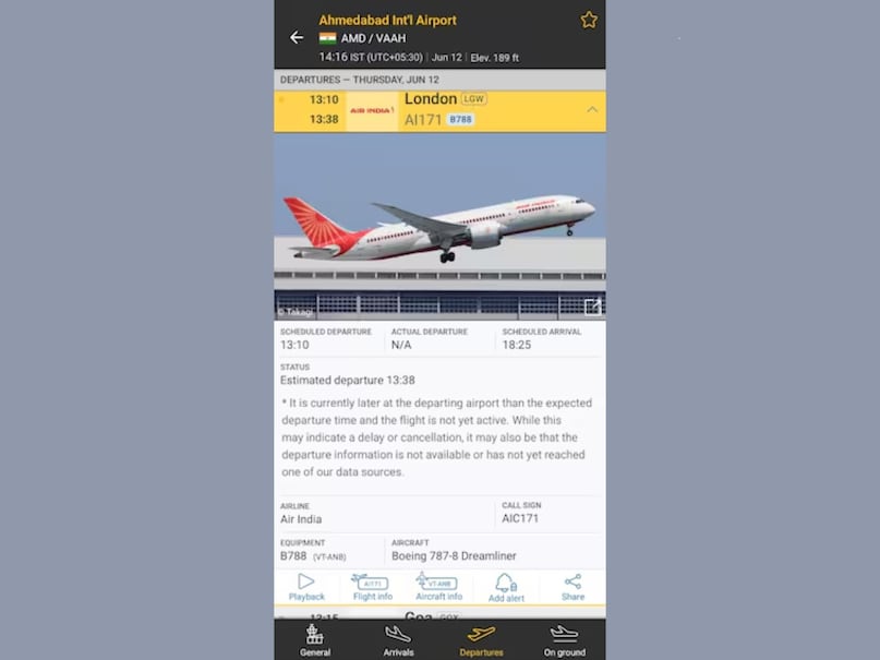 विमान ने दोपहर 1:38 बजे उड़ान भरी, लेकिन दो मिनट बाद ही 1:40 बजे यह एयरपोर्ट की बाउंड्री वॉल से टकराने के बाद मेघानीनगर में आईजीपी कंपाउंड के पास एक इमारत में जा गिरा।