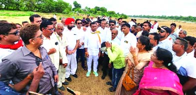 अध्यक्ष श्री बैज ने सवाल उठते हुए कहा कि कौन है वो रेत माफिया, कहां से आए थे। उनके पास हथियार कहां से कैसे आया, इनका अब तक जवाब नहीं मिल पाया है। जबकि माफियाओं ने जिस वाहन में आए थे। उसका गाड़ी नंबर स्पष्ट है तो फिर गिरफ्तारी क्यों नहीं हुई। शूटर बाहर प्रदेश से आते है, शासन-प्रशासन को पता नहीं क्या इसमें संदेह नहीं होता। कौन है संजय सिंह, कहां से आए थे और कहां है। बाकी शूटर की अब तक गिरफ्तारी क्यों नहीं हुई। पूरा प्रदेश देख रहा है यह सरकार निकम्मी हो चुकी है। अपराधियों का राज चरम पर है, धमतरी, गरियाबंद, बस्तर में निर्दोष ग्रामीणों को मारा जा रहा है। पत्रकार को दौड़ाकर मारा जा रहा है। शासन-प्रशासन रेत के अवैध उत्खन्न नहीं रोकते तो हम कांग्रेसजन रोंकेगे, किन्तु छग को यूपी व बिहार नहीं बनने देंगे। छग को जंगलराज नहीं बनने देंगे। जो भी अपराधी व शुटर है, उस पर कड़ी कार्यवाही होनी चाहिए। आठ दिन हो गया है, किन्तु मुख्य सरगना अब तक नहीं पकड़ा जाना बड़ा सवाल है। अगर आठ दिन में नहीं पकड़ जाता है तो कांग्रेस पार्टी उग्र आंदोलन करने मजबूर होगी और इस पूरे मामले को लेकर सदन से सडक़ तक लडऩे तैयार है। इस दौरान प्रमुख रूप से पूर्व मंत्री धनेश पाटिला, डोंगरगांव विधायक दलेश्वर साहू, ग्रामीण कांग्रेस अध्यक्ष भागवत साहू, शहर कांग्रेस अध्यक्ष कुलबीर सिंह छाबड़ा, जितेन्द्र मुदलियार, कुतबुद्दीन सोलंकी, कमलजीत सिंह पिंटू, रमेश डाकलिया, श्रीकिशन खंडेलवाल, पदम कोठारी, पीसीसी महासचिव शाहिद खान, डॉ. थानेश्वर पाटिला, मेहुल मारू, डॉ. आफताब आलम, जिला कांग्रेस प्रभारी बृजेश शर्मा, पंकज बांधव, जिपं सदस्यद्वय विभा साहू, महेन्द्र यादव, पूर्व महापौर हेमा देशमुख, प्रवक्ता रूपेश दुबे, हनी ग्रेवाल, विवेक वासनिक, ब्लॉक अध्यक्ष सूर्यकांत जैन, आसिफ अली, संतोष पिल्ले, अमिन हुद्दा, शकील रिजवी, नीरज कन्नौजे सहित बड़ी संख्या में कांग्रेस व ग्रामीण वार्डवासी उपस्थित थे।
