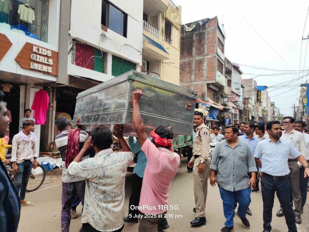 समझाईस उपरांत अवमानना पर आज नगर निगम आयुक्त अतुल विश्वकर्मा, एस.डी.एम. खेमलाल वर्मा, सी.एस.पी. पुष्पेन्द्र नायक, तहसीलदार अमीय श्रीवास्तव सहित प्रशासन की टीम पुलिस बल के साथ आज गुड़ाखु लाईन क्षेत्र में स्वयं निरीक्षण कर कार्यवाही किए।
