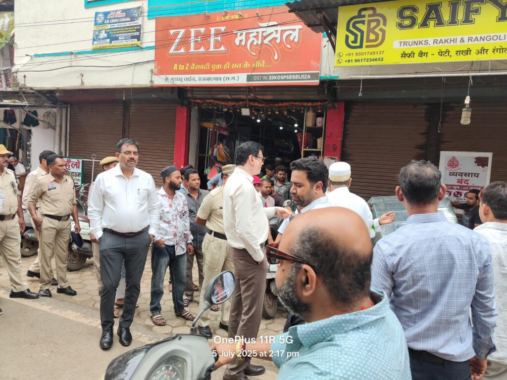 राजनांदगांव (दावा)। शहर के बाजार क्षेत्र को व्यवस्थित करने, यातायात व्यवस्था सुदृढ़ करने तथा सुगम आवागमन के लिए प्रशासन अभियान चला रही है। जिसके परिप्रेक्ष्य में कलेक्टर डॉ. सर्वेश्वर नरेन्द्र भूरे के निर्देश पर प्रशासन ने दो बार चेम्बर ऑफ कामर्स तथा व्यापारियों की बैठक लेकर चर्चा किए और कल प्रशासन की टीम शहर के प्रमुख मार्गो में जाकर दुकान की सीमा में समान रखने व अतिक्रमण हटाने समझाईस दिए थे।