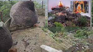 डोंगरगढ़. विश्व प्रसिद्ध मां बम्लेश्वरी पहाड़ी से सोमवार सुबह पहली बार एक विशाल चट्टान खिसककर गिर गई, जिससे इलाके में दहशत फैल गई। चट्टान गिरने से कई बड़े पेड़ धराशायी हो गए और दर्शन के लिए बनी पीछे की नई सीढ़ियों का एक हिस्सा बुरी तरह क्षतिग्रस्त हो गया। इससे मंदिर का मार्ग बंद हो गया है।