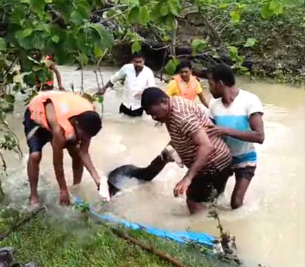 प्राप्त जानकारी के अनुसार, बुधवार शाम लगभग 6:30 बजे गैंदाटोला निवासी केशव धरमगुड़ी (55 वर्ष) और बिरेंद्र यादव छोटे पुलिया नदी को पार करने का प्रयास कर रहे थे। इसी दौरान, पानी के अत्यधिक तेज बहाव में दोनों बह गए। खबर मिलते ही बड़ी संख्या में ग्रामीण घटनास्थल पर जमा हो गए और देर रात तक उनकी तलाश की गई, लेकिन उनका कोई पता नहीं चल पाया। आज सुबह लगभग 7 बजे दुर्ग और राजनांदगांव की गोताखोर टीमों ने सघन तलाश अभियान चलाया। तलाशी के दौरान, घटनास्थल से लगभग दो किलोमीटर दूर थाने के पीछे झाडिय़ों में एक पेड़ से केशव धरमगुड़ी का शव लटका हुआ मिला, जिसे गोताखोरों ने बाहर निकाला। मृतक का आज ही पोस्टमार्टम कर गैंदाटोला पुलिस ने मर्ग कायम कर शव परिजनों को सौंप दिया। जिसके बाद गमगीन माहौल में उनका अंतिम संस्कार किया गया।