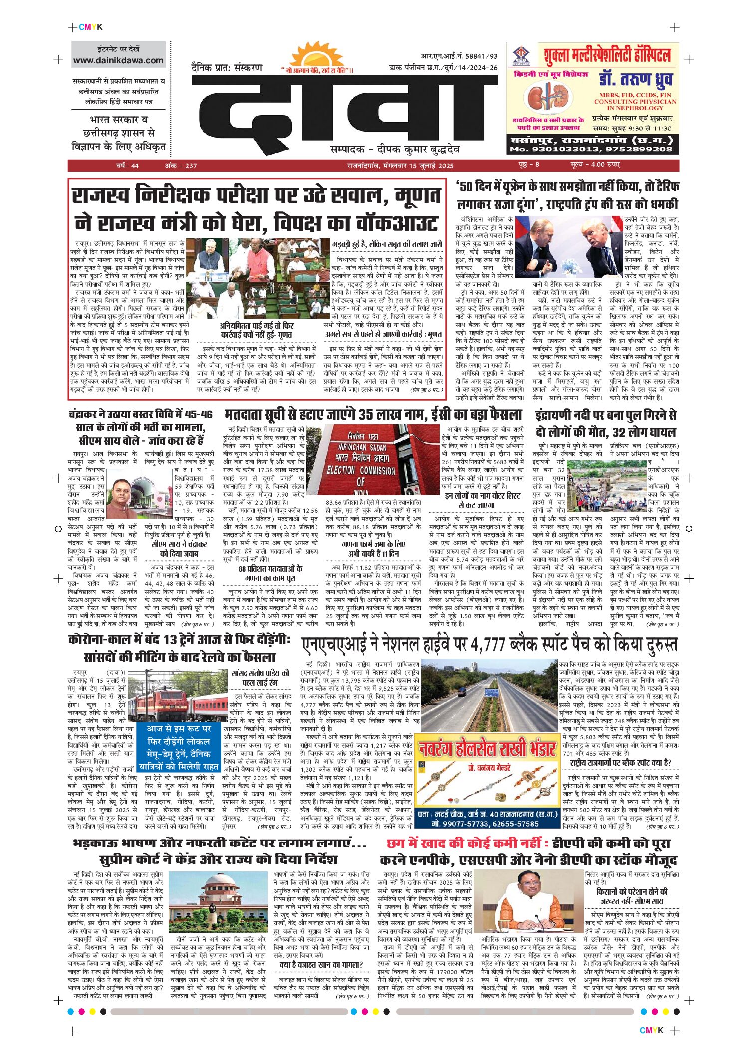 Home ई-पेपर दैनिक दावा ई पेपर 15-07-2025 ई-पेपर दैनिक दावा ई पेपर 15-07-2025 By SURAJ BUDHHDEV - July 15, 2025 1778 0 FacebookTwitterPinterestWhatsApp 20250715