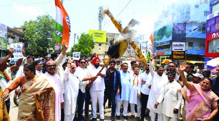 शहर व जिला कांग्रेस कमेटी के संयुक्त तत्वावधान में जयस्तंभ चौक पर हुआ पुतला दहन, कांग्रेसजन भाजपा व ईडी पोस्टर के साथ की नारेबाजी