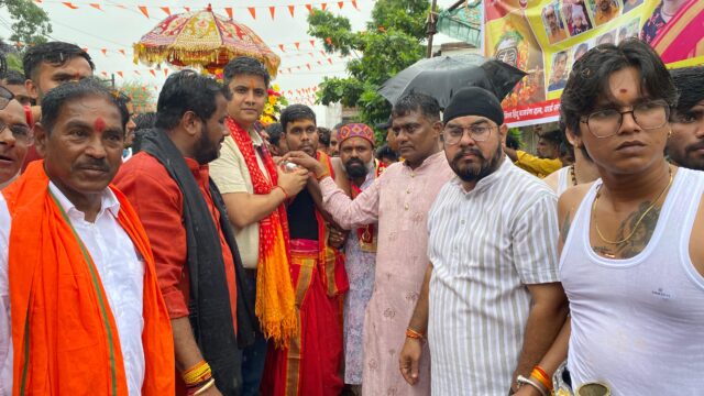 राजनांदगांव (दावा)। श्रावण मास के तीसरे सोमवार को शहर के ढाबा क्षेत्र से बाबा महाकाल श्री चंद्रमौलेश्वर की भव्य पालकी यात्रा निकाली गई। लगभग एक किलोमीटर लंबी बाबा महाकाल की पालकी यात्रा में जिले के पूर्व सांसद संतोष पाण्डे, पूर्व सांसद अभिषेक सिंह, पर्यटन मंडल अध्यक्ष नीलू शर्मा, जिला भाजपा अध्यक्ष कोमल सिंह राजपूत, शिव वर्मा, भाजपा युवा नेता सुमीत भाटिया, महापौर मधुसूदन यादव के सुपुत्र रिभय यादव, पूर्व महापौर श्रीमती हेमा देशमुख, सुपुत्र मानव देशमुख, पूर्व ननि नेता प्रतिपक्ष हाफीज खान, शाहिद खान, आसिफ भाई आदि सहित नगर के गणमान्य नागरिक पूरे भक्ति-भाव के साथ शामिल हुए। उपस्थित उपरोक्त जनप्रतिनिधियों ने सबसे पहले पालकी में विराजमान भगवान श्री चंद्रमौलेश्वर बाबा महाकाल की पूजा अर्चना की। इस दौरान जय-जय महाकाल व भगवान भोले भंडारी के जय-जयकार के नारो से पूरा माहौल गुंजायमान हो उठा।