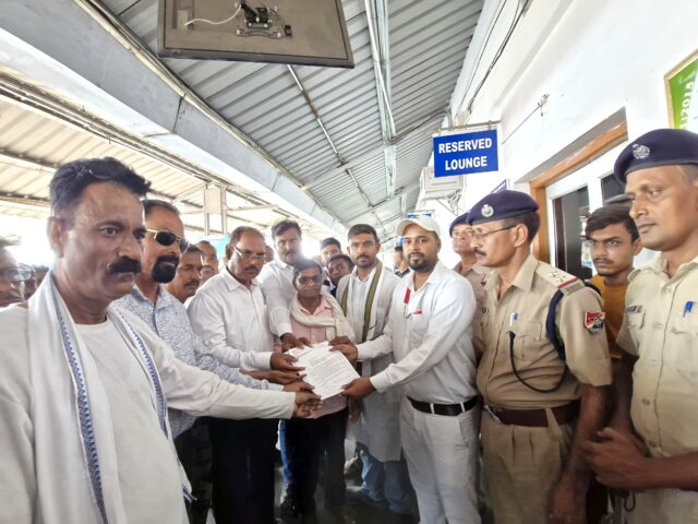रेलवे फाटक पर पुख्ता सुरक्षा इंतजामों की मांग को लेकर स्टेशन प्रबंधक के नाम सौंपा ज्ञापन