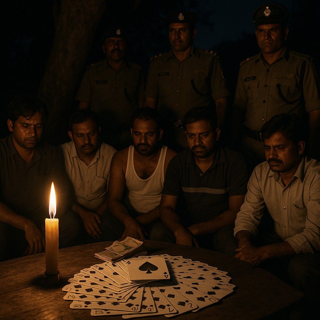 सुनसान कोने में शीशम के पेड़ तले हल्की रोशनी में हार-जीत की बाज़ी चल रही थी।।मनोरंजन की गड्डी अब जुर्म की निशानी बन चुकी थी। पुलिस की यह कार्रवाई न केवल जुएबाज़ों पर नकेल कसने वाली रही, बल्कि छुईखदान में फैले सट्टा-जुआ नेटवर्क को भी कड़ा संकेत दे गई।
