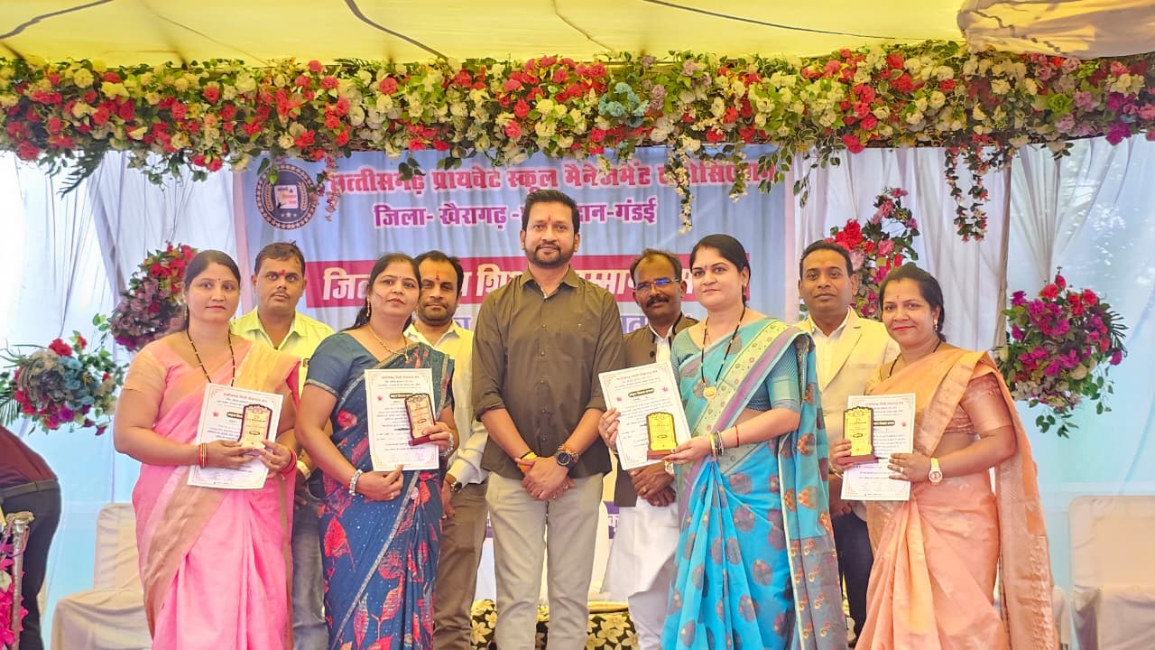 खैरागढ़ : छत्तीसगढ़ प्राइवेट स्कूल मैनेजमेंट एसोसिएशन, जिला खैरागढ़ – छुईखदान – गंडई द्वारा दाऊचौरा में शिक्षक दिवस के उपलक्ष्य में जिला स्तरीय शिक्षक सम्मान समारोह का भव्य आयोजन किया गया। इस कार्यक्रम में जिले के विभिन्न हिस्सों प्राइवेट स्कूलों के शिक्षकों को सम्मानित किया गया और बच्चों द्वारा सांस्कृतिक प्रस्तुतियों से कार्यक्रम को रंगारंग बना दिया।