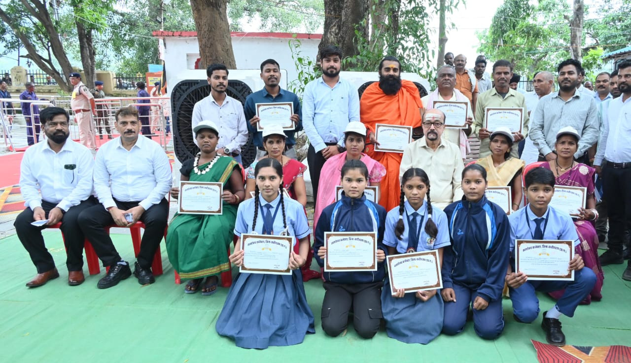 इस अवसर पर राज्यपाल श्री रमेन डेका ने मेधावी छात्रों को प्रशस्ति पत्र प्रदान कर सम्मानित किया। इस दौरान जिला पंचायत अध्यक्ष श्री ईश्वरी साहू, कलेक्टर श्री गोपाल वर्मा, पुलिस अधीक्षक श्री धर्मेन्द्र कुमार छवई, डीएफओ श्री निखिल अग्रवाल, जिला पंचायत सीईओं श्री अजय कुमार त्रिपाठी सहित अन्य अधिकारी उपस्थित रहें।