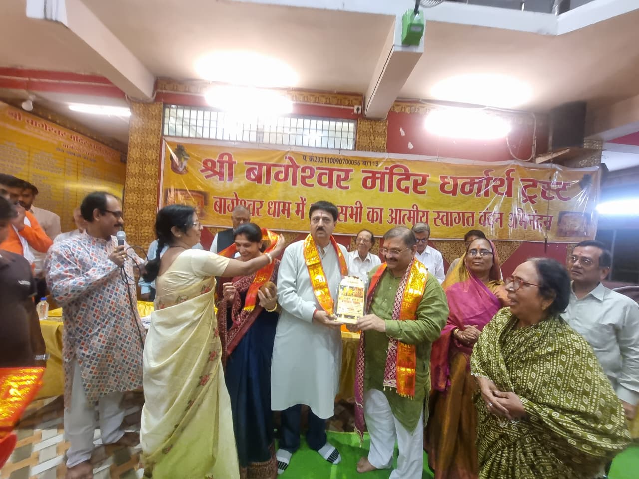 राजनांदगांव, श्री बागेश्वर धाम मंदिर मां बमलेश्वरी पदयात्री सेवा पंडाल में नवरात्र महानवमी को नारी शक्ति जागृति हेतु पद्मश्री फुलबासन यादव को राजनांदगांव रत्न का सम्मान नगर के सांसद संतोष पांडे तथा 21 सामाजिक व धार्मिक सेवा संस्थाओं द्वारा प्रदान किया गया।