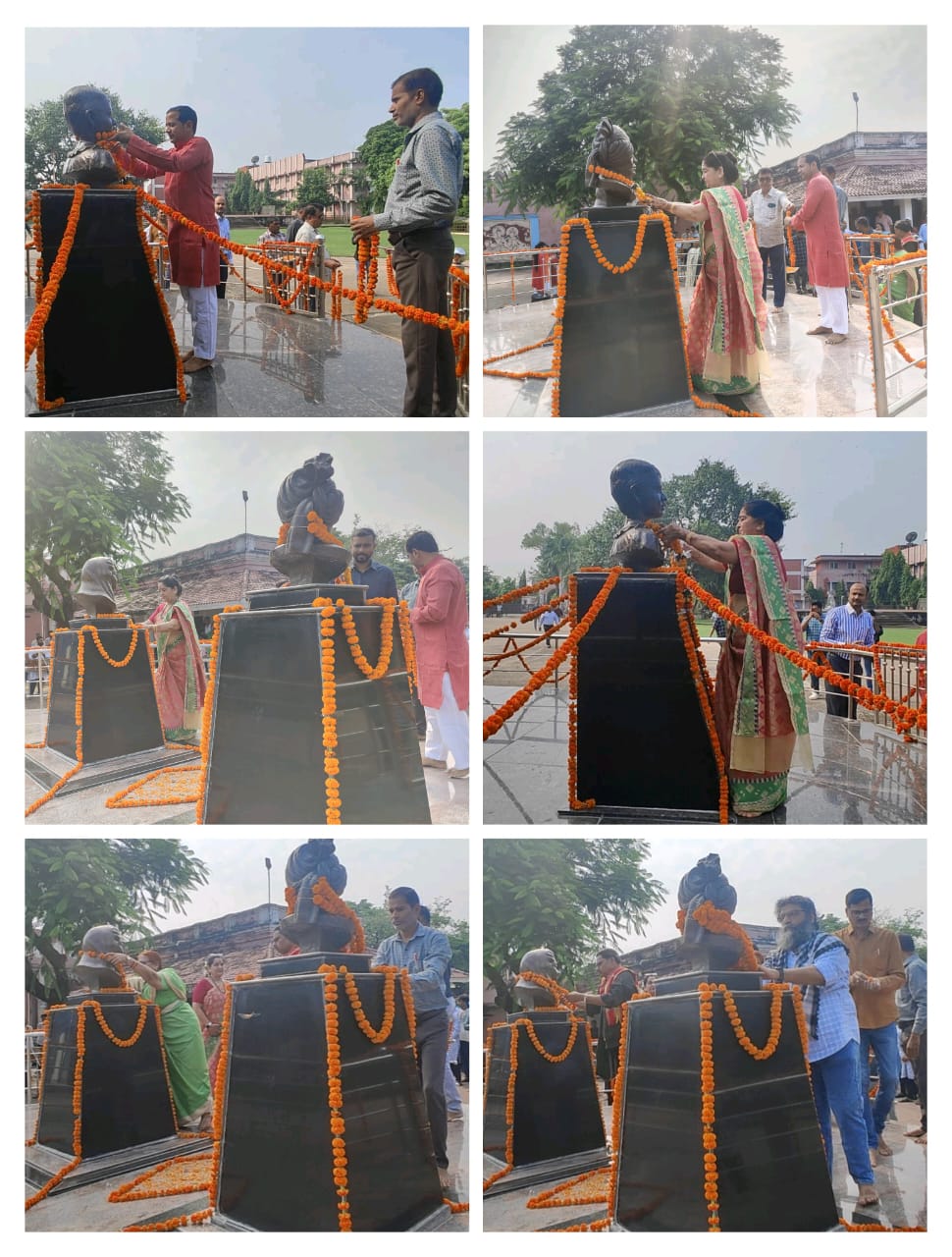 राजा-रानी एवं राजकुमारी की प्रतिमा पर कुलपति प्रो (डॉ) लवली शर्मा, कुलसचिव डॉ सौमित्र तिवारी ने किया माल्यार्पण,