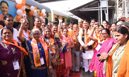 राजनांदगांव (दावा)। सांसद श्री संतोष पाण्डेय एवं अध्यक्ष छत्तीसगढ़ पर्यटन मंडल श्री नीलू शर्मा ने आज रेल्वे स्टेशन राजनांदगांव से श्री रामलला दर्शन अयोध्या धाम योजना अंतर्गत दुर्ग एवं बस्तर संभाग के 13 जिलों के 665 तीर्थ यात्रियों की विशेष ट्रेन को हरी झंडी दिखाकर रवाना किया।