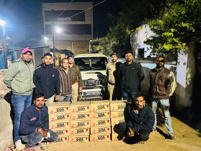 राजनांदगांव: कलेक्टर जितेन्द्र यादव, के निर्देशानुसार तथा अभिषेक तिवारी प्र. सहायक आयुक्त आबकारी जिला राजनांदगांव के निर्देशन में लगातार चलाये जा रहे अवैध शराब विक्रेताओं के विरूद्ध धर-पकड़ अभियान के तहत दिनांक 16.12.2025 अनिल सिंह आबकारी उप निरीक्षक, राजकुमार कुर्रे आबकारी उप निरीक्षक, हमराह स्टाफ ओमप्रकाश सिन्हा, आर्यन ठाकुर, भोजराज बंजारे आबकारी आरक्षक एवं अनिल सिन्हा के दल ने घटना स्थल आबकारी जाँच चौकी बोरतलाब में आरोपी (1) सतीश बनोठे पिता प्रहलाद बनोठे उम्र 33 वर्ष निवासी मोहाटोला, थाना साल्हेकसा जिला गोंदिया (महाराष्ट्र) तथा (2) सरोज बनोठे पिता चंदेलाल बनोठे उम्र 34 वर्ष निवासी बोथली थाना बहिला जिला बालाघाट (मध्यप्रदेश) द्वारा संयुक्त रूप से एक सफेद रंग की महिंद्रा स्कॉर्पियो चार पहिया वाहन क्रमांक MP 09 BC-3962 में 20 पेटी में भरकर रखे कुल 1000 पाव GOA WHISHKY केवल मध्य प्रदेश राज्य में विक्रय हेतु वैध का लेबल लगा कुल मात्रा 180.00 बल्क लीटर अवैध रूप से धारण कर परिवहन करते जप्त किया गया। इस पर आबकारी अधिनियम 1915 की धारा 34(2), 36 एवं 59 (क) के अंतर्गत प्रकरण दर्ज कर आरोपी को गिरफ्तार किया जाकर