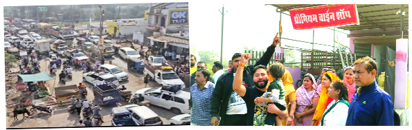 वार्ड के जयकिशन शर्मा ने कहा कि दोनों साइड दारु भ_ी खुले होने धर परिवार बहु- बेटियों को बाहर निकलना मुश्किल हो गया है। शराबियों की गंदी-गंदी गाली-गलौज से लोगों का जीना मुहाल हो गया है। शराब भ_ी होने से व्यवसाय में भी फर्क पड़ रहा है। बेहतर होगा कि प्रशासन हमें भी शराब बेचने का परमीशन दें दें। उसी को बेचकर अपना घर चलाएंगे। इसी तरह वार्ड की अंजू साहू ने बताया कि शराब भ_ी खुलने से महिलाओं का बाहर निकलना हराम हो गया है वहीं युवतियों का कहना है कि बाहर निकलने पर शराबी लोग छींटाकसी करते हैं। इससे छेडख़ानी की घटना बढ़ गई है। महिलाओं का कहना है कि कलेक्टर उनकी बात सुन नहीं रह रहा। शराब भ_ी खुलने से मुहल्ले का वातावरण खराब हो रहा है। लोगों की परेशानी बढ़ गई है। बहर हाल शराब दुकान के विरोध में उतरे नंदई वासियों के चक्का जाम से चौक के समीप अफरा तफरी की स्थिति रही। पुलिस भी पहुंचे पर लोगों के विरोध के आगे वे लोग भी कुछ नहीं कर पाए।