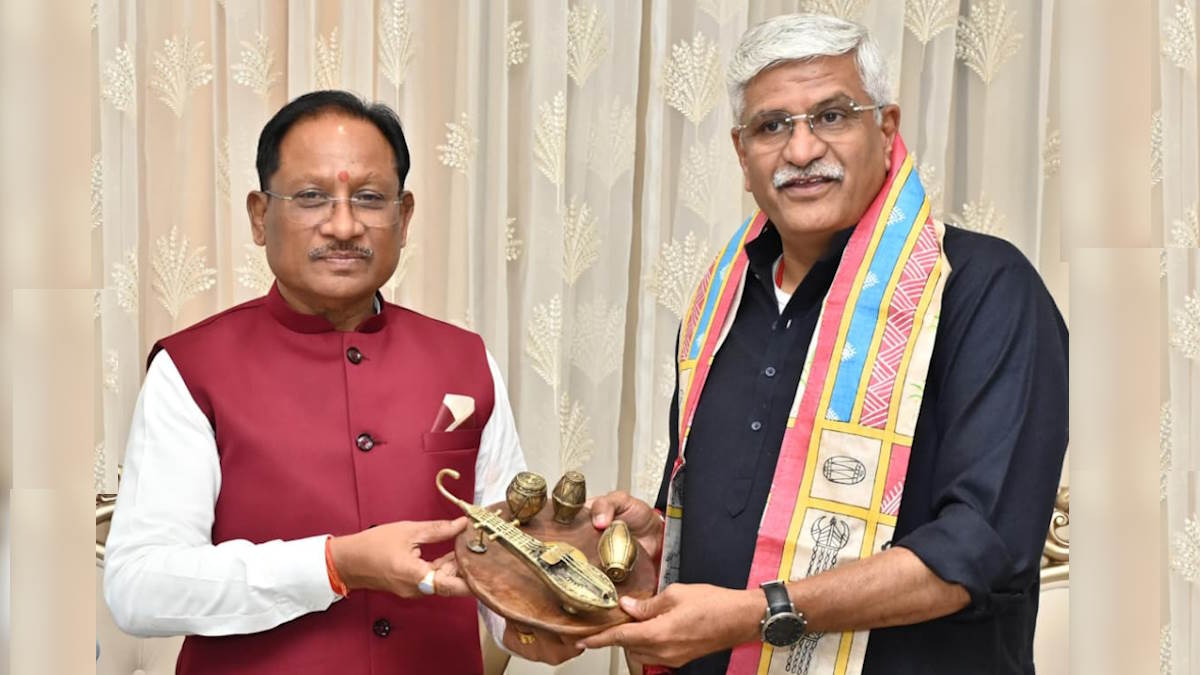 रायपुर। केंद्रीय पर्यटन एवं संस्कृति मंत्री गजेन्द्र सिंह शेखावत ने आज नवा रायपुर स्थित मुख्यमंत्री निवास में मुख्यमंत्री विष्णु देव साय से सौजन्य भेंट की. मुलाकात के दौरान छत्तीसगढ़ में पर्यटन विकास, सांस्कृतिक धरोहरों के संरक्षण एवं सुदृढ़ीकरण से संबंधित विषयों पर सौहार्दपूर्ण एवं रचनात्मक चर्चा हुई.
