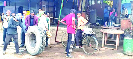 बड़ा हादसा टला : चलते ट्रक से निकला पहिया, दुकान का टीनशेड तोड़ते हुए थमा